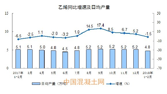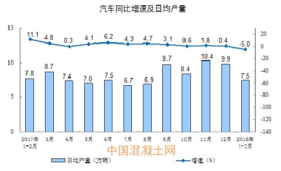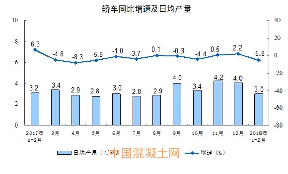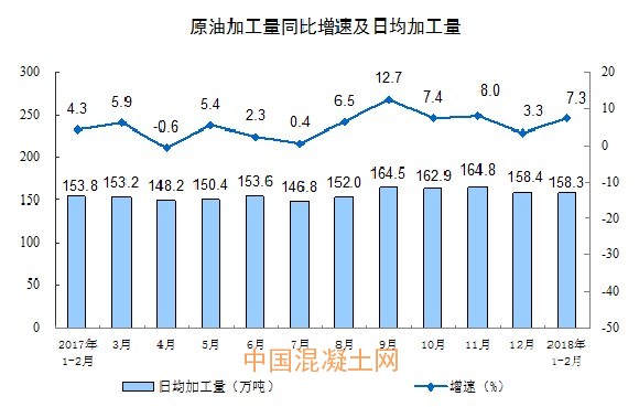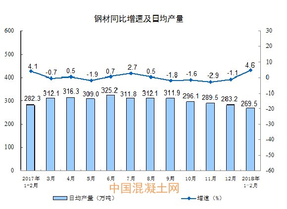 分產品看,1-2月份,596種產品中有384種產品同比增長。其中,鋼材15903萬噸,同比增長4.6%;水泥產量22256萬噸,增長4.1%;十種有色金屬886萬噸,增長1.9%;乙烯281萬噸,下降1.5%;汽車441.8萬輛,下降5.0%;轎車178.8萬輛,下降5.8%;發電量10455億千瓦時,增長11.0%;原油加工量9340萬噸,增長7.3%。