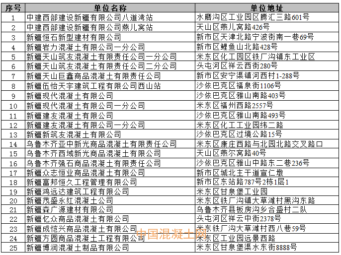 新疆兵團建工兵團金石商品混凝土有限責任公司(米東站、北站站)