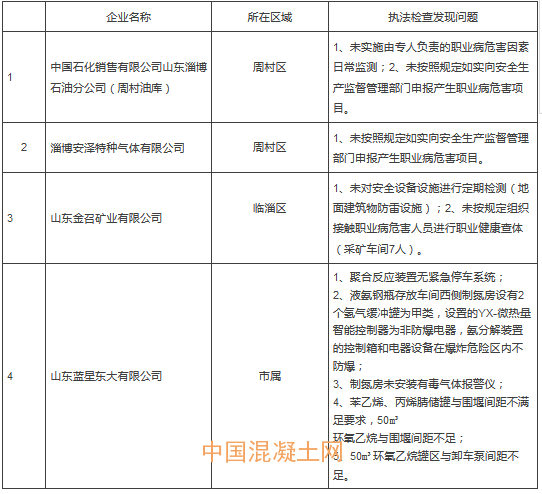 曝光的企業分別為:中國石化銷售有限公司山東淄博石油分公司(周村油庫)、淄博安澤特種氣體有限公司、山東金召礦業有限公司及山東藍星東大有限公司。