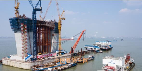 4月26日,經過一個多月的準備工作,由中鐵大橋局承建的滬通長江大橋29號主塔墩開始下橫梁首次混凝土澆筑,共計混凝土6439立方米。