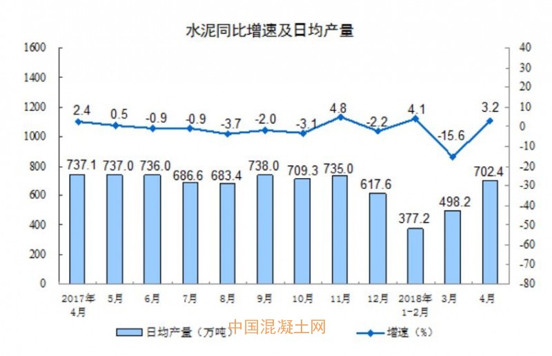 2018年1-4月份,全國(guó)累計(jì)水泥產(chǎn)量5.84億噸,同比下降1.9%,降幅較一季度收窄2.6個(gè)百分點(diǎn),去年同期為增長(zhǎng)0.7%。4月份,全國(guó)單月水泥產(chǎn)量2.11億噸,環(huán)比大幅增長(zhǎng)36.45%,同比增長(zhǎng)3.2%。