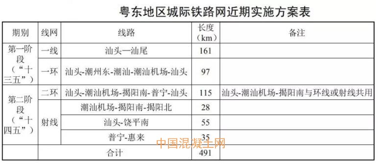 建議近期粵東地區城際鐵路實施 491km,總投資 1117億元,分兩個階段實施。