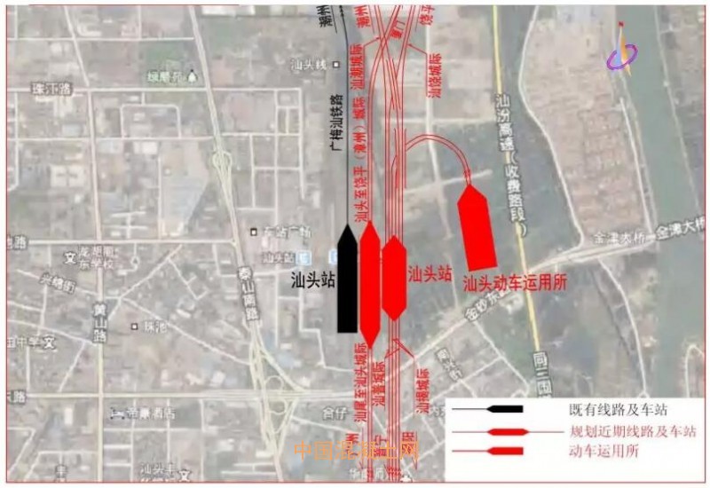既有汕頭站為廣梅汕鐵路既有客運站,站前廣場與四通八達的城市道 路網相連,附近設有汕頭汽車客運中心站,是汕頭市重要的綜合交通樞 紐。 既有汕頭站位于地面,規劃由西向東依次為普速場、客專場和城際 場,汕頭-汕尾、汕頭-饒平(漳州)、汕頭-潮州東、汕頭-潮汕機場、汕頭- 普寧、汕頭-饒平南城際線共 6 條線路接入本站。規劃汕頭-汕尾、汕頭-饒 平(漳州)城際線引入客專場,汕頭-潮汕機場、汕頭-普寧城際線從車站南 端引入城際場,汕頭-潮州東、汕頭-饒平南城際線從車站北端引入城際 場,城際場北端連接汕頭動車運用所,客流通過地下通道或站廳換乘。見 圖 6-3-1。
