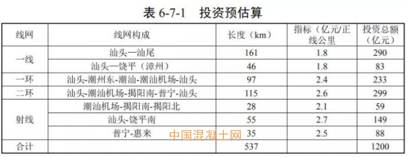 第一階段(“十三五“期間)實施“一線”之汕頭-汕尾和“內環”汕頭-潮州東-潮汕-潮汕機場-汕頭,計 258km;總投資 523 億元。
