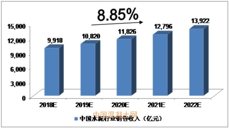 2017年,水泥行業整體效益水平同比有了大幅度的提升,水泥行業實現收入9,149億元,同比增長17.89%。我們預計,2018年中國水泥行業銷售收入將達到9,918億元,未來五年(2018-2022)年均復合增長率約為8.85%,2022年中國水泥行業銷售收入將達到13,922億元。