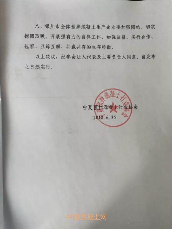 25日,寧夏混凝土行業協會發布《銀川市全體預拌混凝土生產企業決議》,2018年上半年,銀川預拌混凝土行業在市場萎縮,經濟發展不平衡、不穩定的情況下度過了十分艱難與復雜的生存之路。6月13日,銀川市全體預拌混凝土生產企業法人代表及主要領導人討論決定,自即日起實行如下決議: