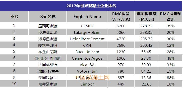 此次評選是中國混凝土網(wǎng)以各大跨國企業(yè)的實際產(chǎn)量為主要依據(jù)評選得出2017年世界混凝土企業(yè)十強排名(不含中國企業(yè)),評選時間有限,難免有所疏忽,若其中數(shù)據(jù)有所偏差,請聯(lián)系我們!(來源:中國混凝土網(wǎng),轉載請注明出處,違者必究)