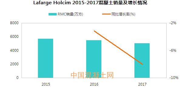 2017年拉法基豪瑞水泥、骨料及混凝土銷量都有所下滑,集團實現(xiàn)凈銷售額398.35億美元,其中實現(xiàn)水泥銷量2.09億噸,骨料銷量2.79億噸,混凝土銷量5060萬立方米,目前集團在全球共有1309個預拌混凝土廠,擁有超過81000名員工。