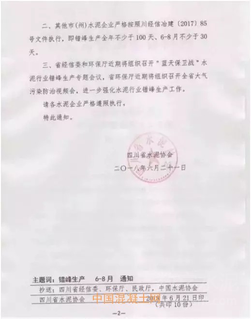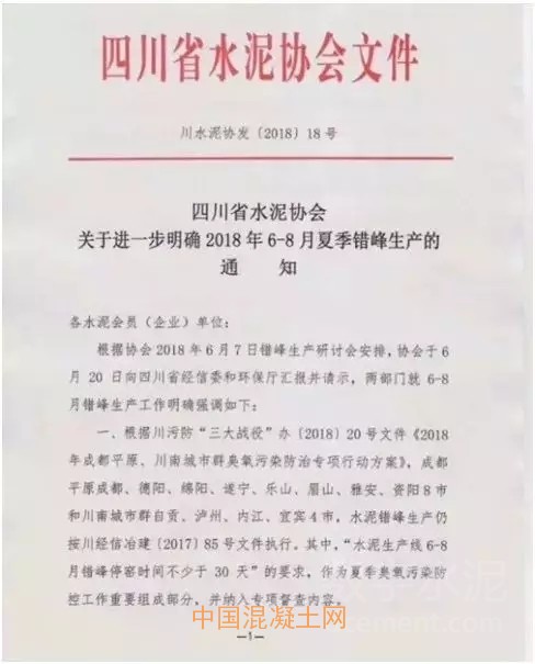據悉,四川省水泥協會向四川省經信委和環保廳匯報并請示關于四川省水泥企業的夏季錯峰計劃后,發布《關于進一步明確2018年6月至8月夏季錯峰生產的通知》。