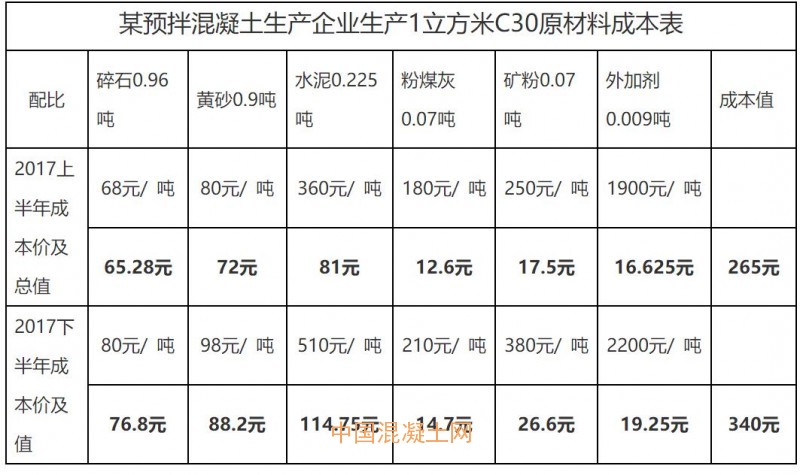 從上表可以算出,2017年上半年和下半年水泥、砂石骨料(碎石和黃砂)占總成本值的比重分別為30.57%、51.80%和33.75%、48.53%。水泥和砂石骨料進貨價格變動對預拌混凝土生產成本影響較大。