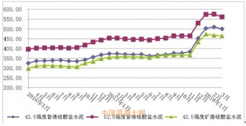 今年1-3月份42.5強度散裝普通硅酸鹽水泥價格分別為:502.33元/噸、510.47元/噸、500.07元/噸,價格沖高回落,52.5強度散裝普通硅酸鹽水泥價格分別為:574.20元/噸、576.07元/噸、561.67元/噸,價格也是沖高回落。