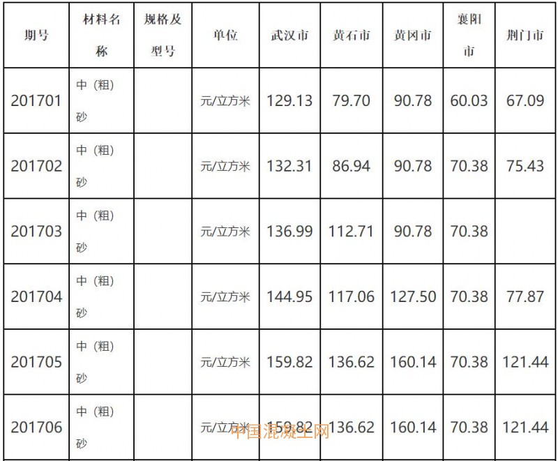 一、2017年以來湖北省預拌混凝土原材料價格及走勢情況
