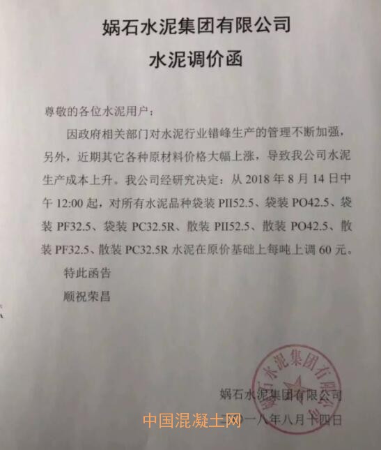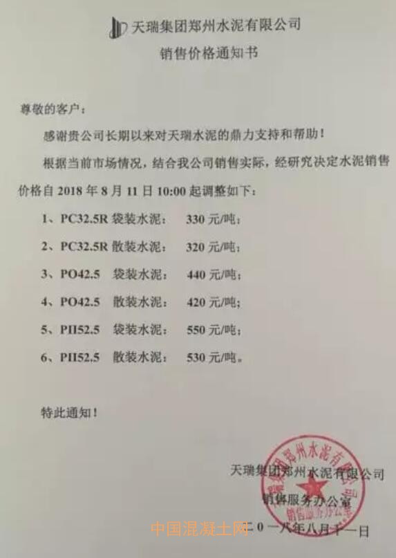 8月11日上午10點起,河南地區主導品牌宣布上調水泥價格,隨后河南大多數區域主流品牌水泥價格宣布上調。