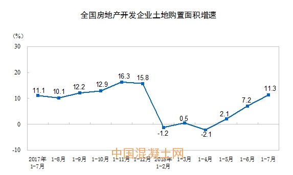 1-7月份,房地產開發企業土地購置面積13818萬平方米,同比增長11.3%,增速比1-6月份提高4.1個百分點;土地成交價款6619億元,增長21.9%,增速提高1.6個百分點。