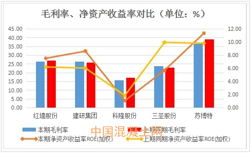 在混凝土外加劑行業,目前已經上市的公司并不多,而通過比較行業內的規模企業的盈利能力來看,今年前三季度,紅墻股份、科隆股份與蘇博特等三家公司的毛利率水平相比去年同期均略有下滑,但是凈資產收益率水平有三家是上升的。而蘇博特與其他四家規模企業相比,毛利率與凈資產收益率水平均是最高的,體現了公司在行業內具有較強的盈利能力。較好的盈利能力是公司穩健發展最強有力的保障。