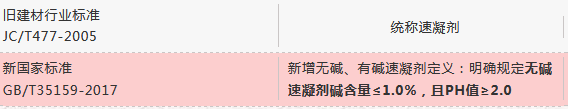 在速凝劑分類不清晰的情況下,新國標明確了“無堿速凝劑”的定義,以后啥是無堿速凝劑可算有了標準。