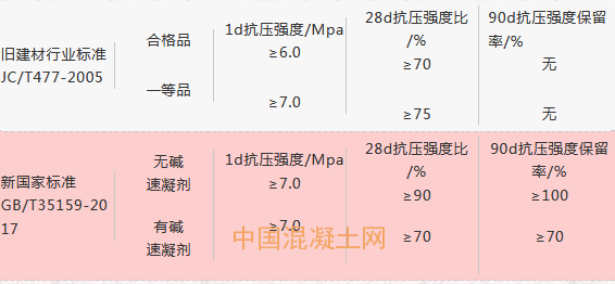新標取消了速凝劑合格品與一等品的區分,凈漿的初凝時間與終凝時間參數同樣只有一條合格指標。