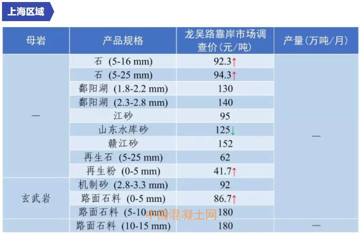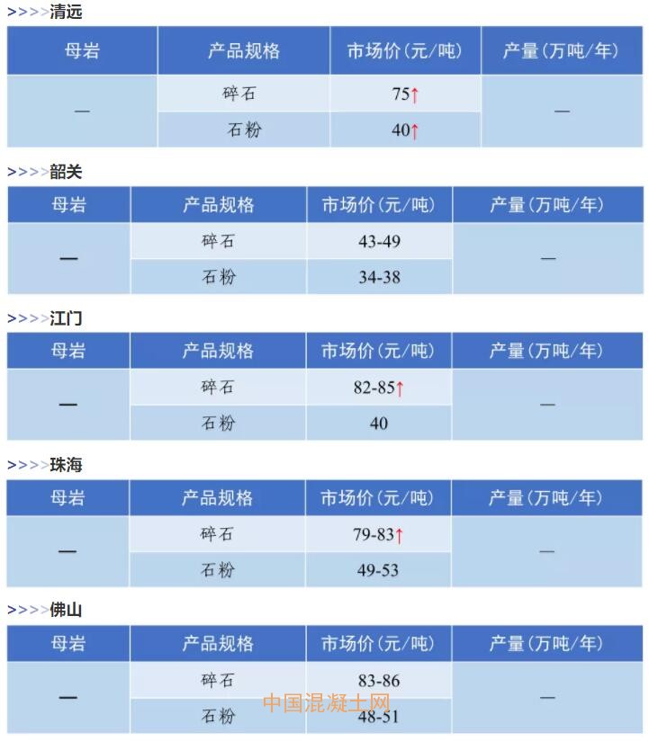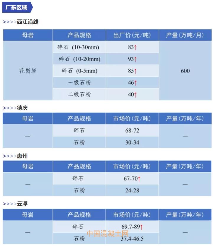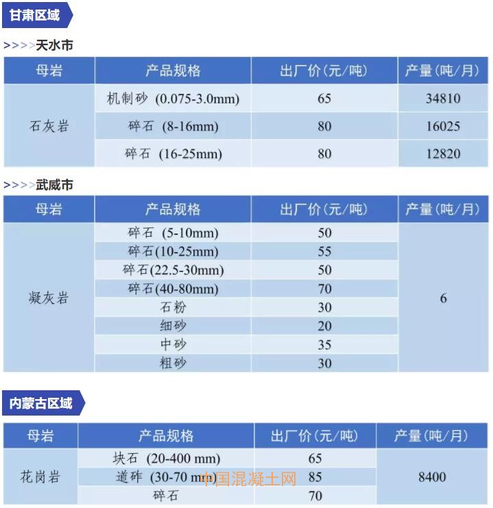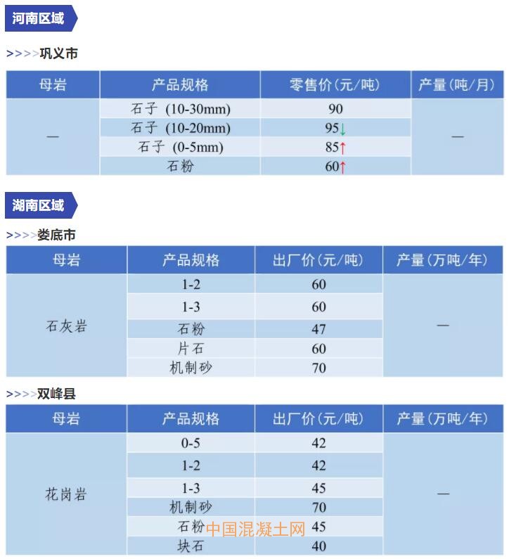 11月全國(guó)砂石價(jià)格和產(chǎn)量匯總