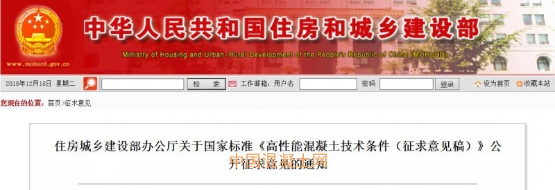 2018年12月14日,住房城鄉建設部辦公廳發布關于國家標準《高性能混凝土技術條件(征求意見稿)》公開征求意見的通知,國家標準《高性能混凝土技術條件(征求意見稿)》現向社會公開征求意見。