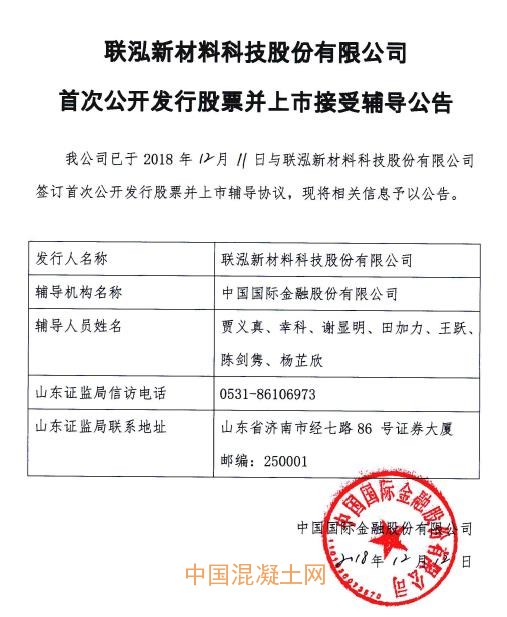 近日,中國證券監督管理委員會山東監管局發布聯泓新材料科技股份有限公司首次公開發行股票并上市接受輔導公告。
