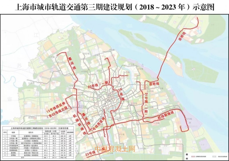 此次獲批的上海三期規(guī)劃時間為2018年至2023年,規(guī)劃顯示此次即將建設(shè)包括19號線、20號線一期、21號線一期、23號線一期、13號線西延伸線、1號線西延伸線,總共6條地鐵線及機(jī)場聯(lián)絡(luò)線、嘉閔線、 崇明線3條市域鐵路,總長度286.1公里。