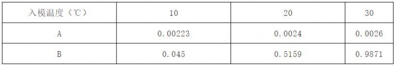 A、B——與混凝土施工入模溫度相關的系數,按表B.1.5-1取內插值;當入模溫度低于l0℃或高于30℃時,按l0℃或30℃;