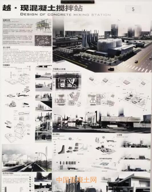 此次混凝土攪拌站升級改造既要圍繞著工藝與設(shè)備、滿足環(huán)保功能的改造,還要給混凝土攪拌站穿上“新衣”,即通過外觀設(shè)計,為攪拌站增加一個封閉罩,在為它增加抑塵降噪功能的同時,把它打造成為一道城市靚麗風(fēng)景線,一個與周邊環(huán)境和諧統(tǒng)一的“城中工廠”。比如“越?現(xiàn)混凝土攪拌站”設(shè)計方案,“越”字寓意是越過城市原本的天際線,讓混凝土攪拌站的設(shè)計與城市結(jié)合的同時,能夠成為北京這個城市的一個景觀雕塑、城市亮點(diǎn);“現(xiàn)”字的寓意是當(dāng)人們游走于周邊道路時,該設(shè)計方案總能作為周邊建筑的一個視覺焦點(diǎn),突出可持續(xù)發(fā)展的理念。