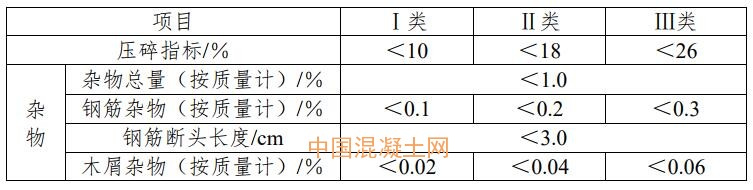 再生粗骨料除應符合現行國家標準《混凝土用再生粗骨料》GB/T25177的規定外,尚應滿足下表要求: