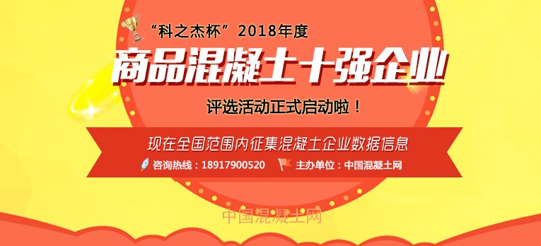 “科之杰杯”2018年度中國商品混凝土十強企業評選活動已正式啟動,現在全國范圍內征集混凝土企業數據信息,望各位砼行企業能踴躍參與評選,共同推動混凝土行業的繁榮與發展。