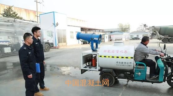 匯豐商砼灑水車定時對廠區道路進行噴淋作業