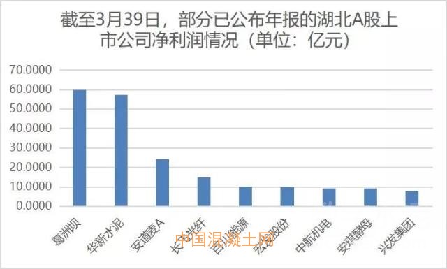 在以上公司中,注冊地位于湖北黃石的華新水泥股份有限公司(下簡稱“華新水泥”)以57.05億元的歸母凈利潤,在湖北最賺錢的上市公司中排名第二,比第一名葛洲壩僅低了2.55億元。