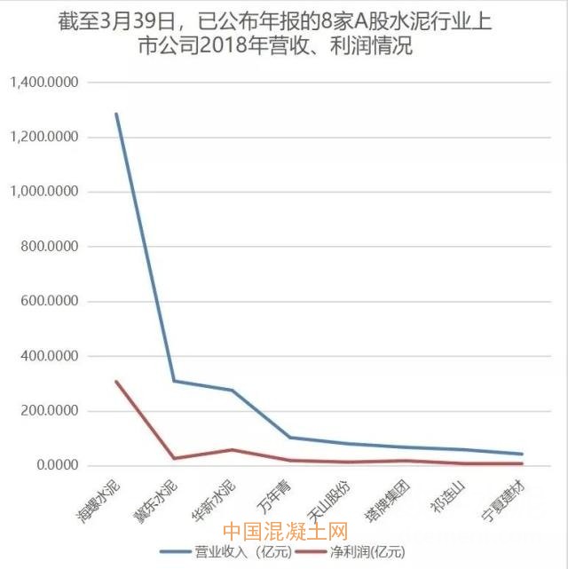 觀察已發布年報的8家A股水泥行業上市公司的營收、利潤情況,可以看到“一超多強”的局面已然出現。