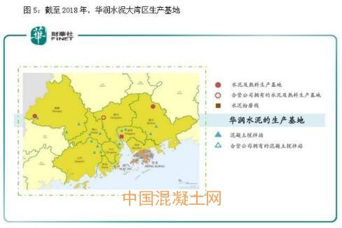 首先,從公司大灣區(qū)業(yè)務(wù)布局上看(圖5),公司作為目前大灣區(qū)熟料市場(chǎng)占有率位列第一的供應(yīng)商,不管從水泥供應(yīng)地理位置及后續(xù)熟料產(chǎn)能調(diào)配上均占有天時(shí)地利的優(yōu)勢(shì)。截至2018年底,華潤(rùn)水泥在大灣區(qū)的水泥及熟料生產(chǎn)基地(包含合營(yíng)公司)有3個(gè),水泥磨粉生產(chǎn)線1條,混泥土攪拌站(包含合營(yíng)公司)共計(jì)21個(gè)。