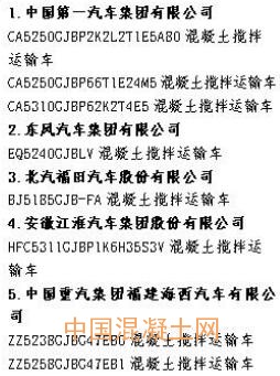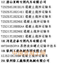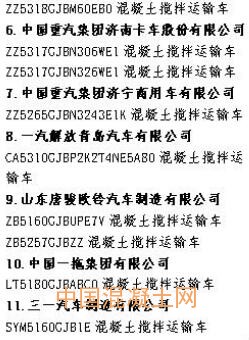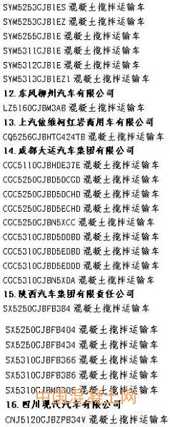 68款暫停生產(chǎn)與銷售的混凝土攪拌運輸車,來自于26家生產(chǎn)企業(yè),既有國內(nèi)主流的整車生產(chǎn)企業(yè),如一汽解放、東風(fēng)、福田、重汽濟南卡車、江淮、解放青島、柳汽、紅巖、華菱、山東唐駿、三一、重汽海西等;也有改裝類專用車企業(yè),如唐山亞特專用汽車公司、湖北一專、梁山中集東岳等。