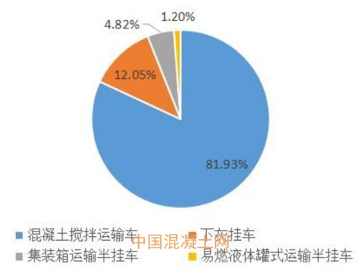 小編注意到,這些暫停生產(chǎn)與銷售的產(chǎn)品包括混凝土攪拌車、集裝箱運輸半掛車、下灰半掛車和易燃液體罐式運輸半掛車4種車型。其中,混凝土攪拌運輸車最多,數(shù)量為68款,占比81.93%;其次是下灰掛車,數(shù)量為10款,占比12%;剩下5款,為4款集裝箱運輸半掛車和1款易燃體罐式運輸半掛車。唯一上榜的易燃罐式運輸半掛車,產(chǎn)自與河北宏泰專用汽車有限公司。