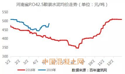 由圖中可以看出今年河南省水泥均價整體高于去年同期。4月份河南省水泥價格開始止跌反漲,多地水泥價格上調2輪30元/噸,部分地區上調一輪30元/噸。若本次上調落實到位,河南省水泥均價將高于去年同期約80元/噸。