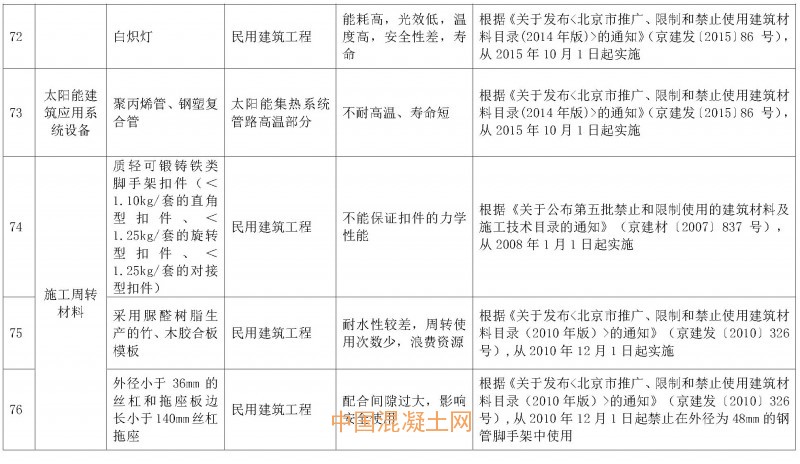 因生產工藝,質量控制,安全防護,儲運、使用過程,污染環境等原因,北京新增萘系減水劑等5種禁止使用建筑材料。