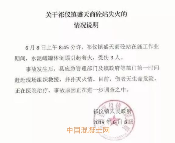 祁儀鎮(zhèn)人民政府關(guān)于祁儀鎮(zhèn)盛天商砼站失火的情況說明: