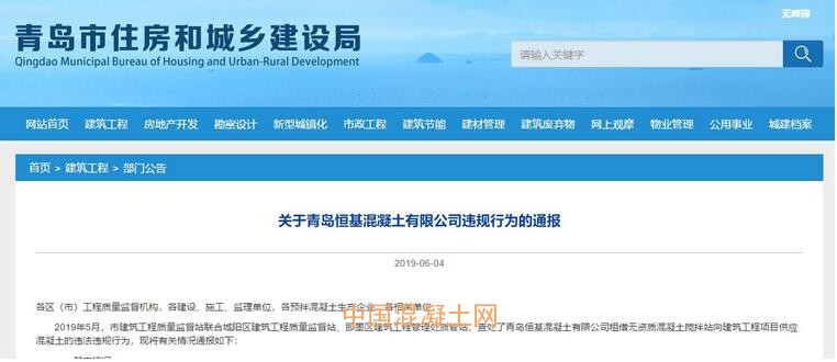 6月6日,記者從青島市住房和城鄉建設局了解到,該部門發布了《關于青島恒基混凝土有限公司違規行為的通報》。