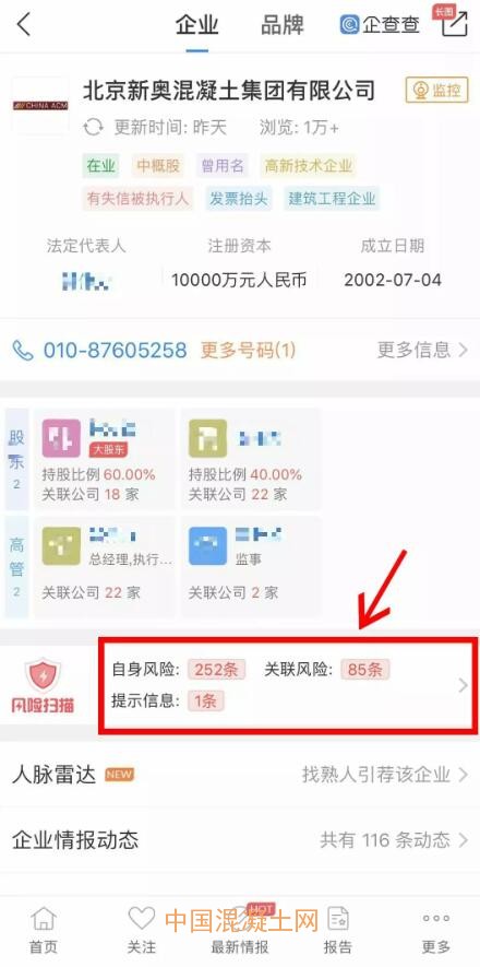 過去的一切看起來風光無限,然而小編查到,新奧混凝土集團自身風險有252條,關聯(lián)風險由85條。