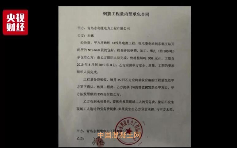 劉飛云介紹,該標段總承包方為中國葛洲壩集團電力有限責任公司,總承包方通過青島永利捷電力工程有限公司、青島順源達勞務有限公司等層層分包,最終由他所在的青島遠望建筑安裝工程有限公司實際施工。