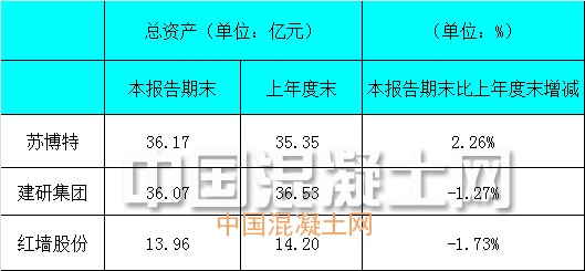 綜合比較,在2019年一季度的成績單中,建研集團(tuán)以6.06億的營業(yè)收入領(lǐng)先其他兩家外加劑企業(yè),總資產(chǎn)方面,江蘇蘇博特與建研集團(tuán)兩家實力相當(dāng),蘇博特以2.26%的增長速度稍領(lǐng)先于建研集團(tuán),紅墻股份雖是三巨頭之中規(guī)模最小的,但實力仍遙遙領(lǐng)先行業(yè)其他外加劑企業(yè)。