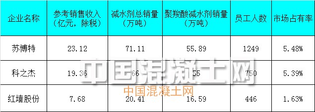 圖3 2018年外加劑三巨頭相關(guān)數(shù)據(jù)對比