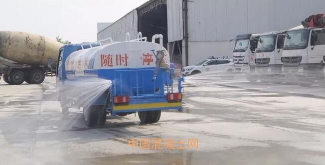 現(xiàn)場,整齊的混凝土運(yùn)輸車一字排開,車輛進(jìn)出都要經(jīng)過專門的玻璃噴淋房進(jìn)行沖洗。場區(qū)內(nèi)水泥地面平整,自動(dòng)噴淋水槍、車輛沖洗設(shè)備、廢水廢渣處理排放循環(huán)設(shè)施以及監(jiān)控設(shè)備等一應(yīng)俱全。建筑材料從運(yùn)輸?shù)缴a(chǎn)采用全封閉模式,可有效減少揚(yáng)塵、降低噪音,綠色環(huán)保的清潔生產(chǎn)理念貫穿了混凝土生產(chǎn)整個(gè)過程。