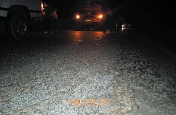 路面撒滿了混凝土