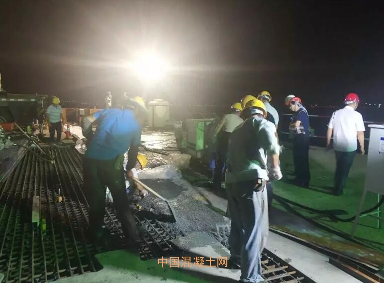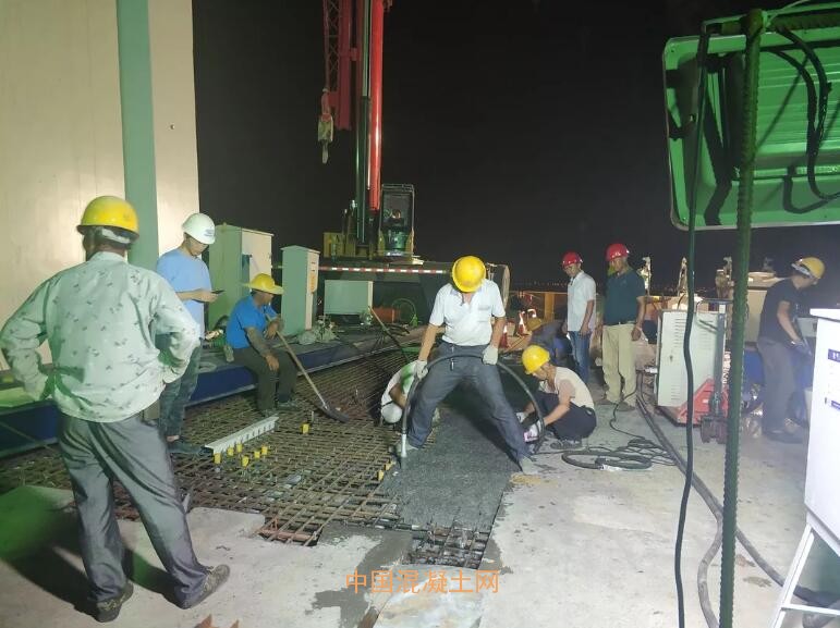 為確保正式澆筑混凝土?xí)r萬(wàn)無(wú)一失,分公司組織相關(guān)技術(shù)、設(shè)備、試驗(yàn)以及勞務(wù)等30余人相繼前往五橋現(xiàn)場(chǎng)。他們頂著烈日、克服酷暑、不畏艱苦、做了大量的準(zhǔn)備工作,終于,在大家的共同努力下迎來(lái)了這世界級(jí)創(chuàng)新工程的再一次成功。