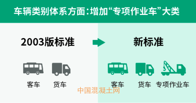 2003版標(biāo)準(zhǔn)中,貨車按照車輛出廠后國(guó)家有關(guān)行政主管部門核定的額定載質(zhì)量進(jìn)行車型分類,新標(biāo)準(zhǔn)中各類貨車均按照總軸數(shù)、車長(zhǎng)和最大允許總質(zhì)量進(jìn)行車型分類。