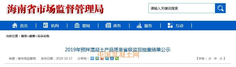 2019年海南省預拌混凝土產品質量省級監督抽查產品及其企業名單