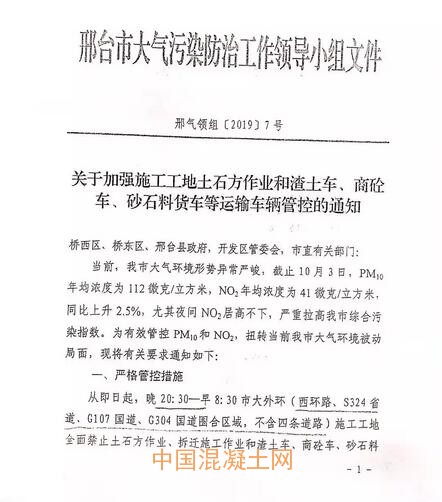 近日,邢臺市大氣辦下發通知要求,邢臺市主城區范圍內晚20:30-早8:30間全面禁止施工工地土石方、拆遷施工作業,全面禁止渣土車、商砼車、砂石料貨車等運輸車輛通行。