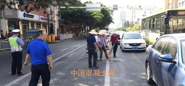 10月22日,該局機動中隊聯合交警部門責令混凝土運輸企業,清理路面上存在的“滴撒漏”后已固化的水泥砂漿,現已全部清理到位。(區城管執法局)
